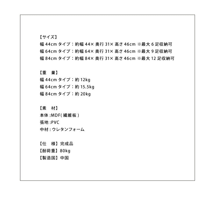 幅44cmタイプ:約幅44×奥行31×高さ46cm ※最大6足収納可