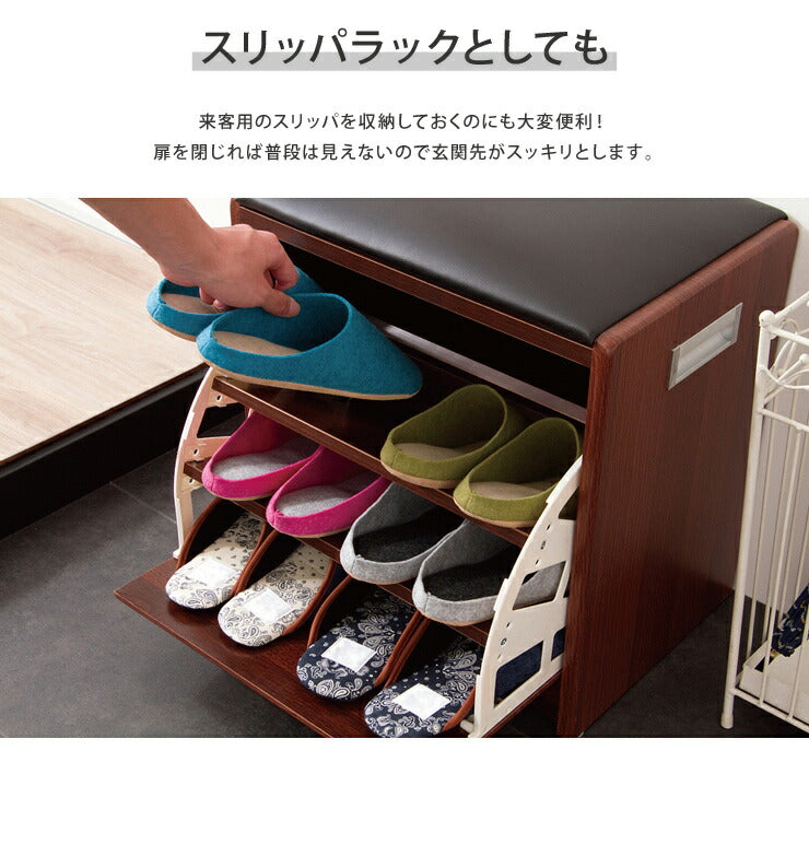 シューズラック ベンチ付き 幅64cmタイプ ベンチ付きシューズラック フラップ式 下駄箱 靴箱 ベンチ 腰掛け イス 玄関 完成品(代引不可)
