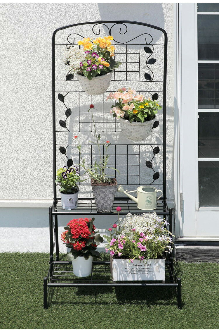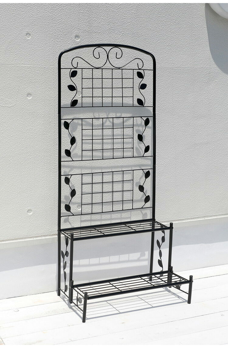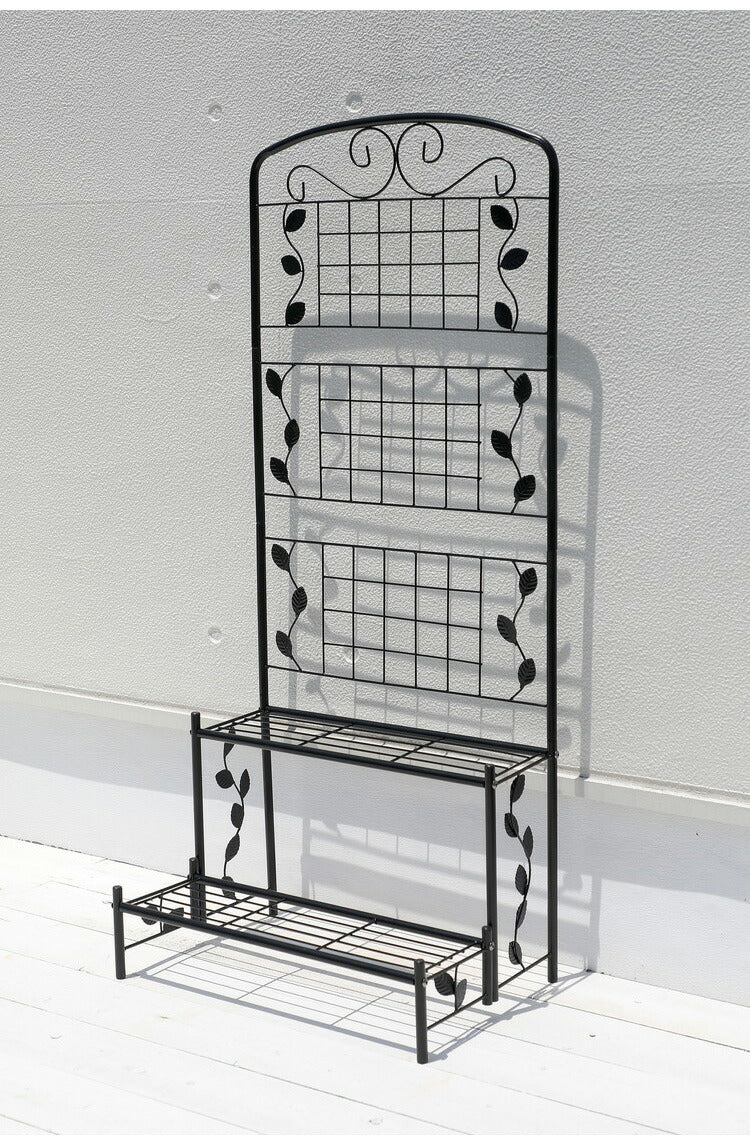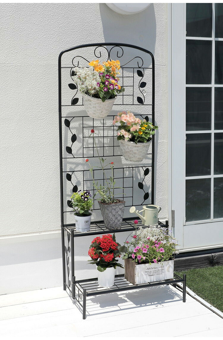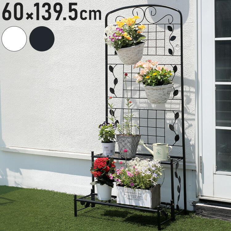 フェンス付き フラワースタンド スリム 2段 幅60cm ガーデンフェンス ラティス アイアン フェンス ガーデニング 花台 棚 ガーデン ハンギング ベランダ 目隠し プランターラック スチール(代引不可)