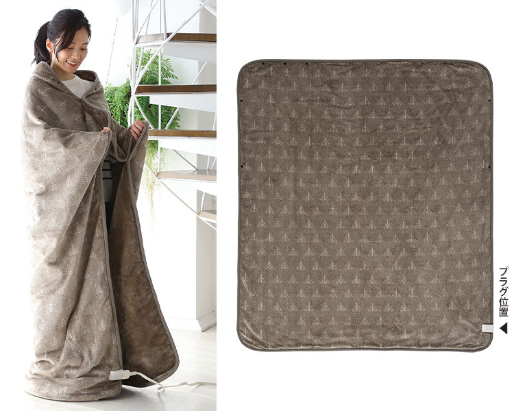 電気ひざかけ毛布 160×140cm ホットローブ 着る毛布 フランネル 節電 ブランケット 節約 電気毛布 防寒対策 ひざ掛け 羽織る ツリー柄 おしゃれ 暖か 丸洗い 洗濯 ダニ退治 CWN162G-HK