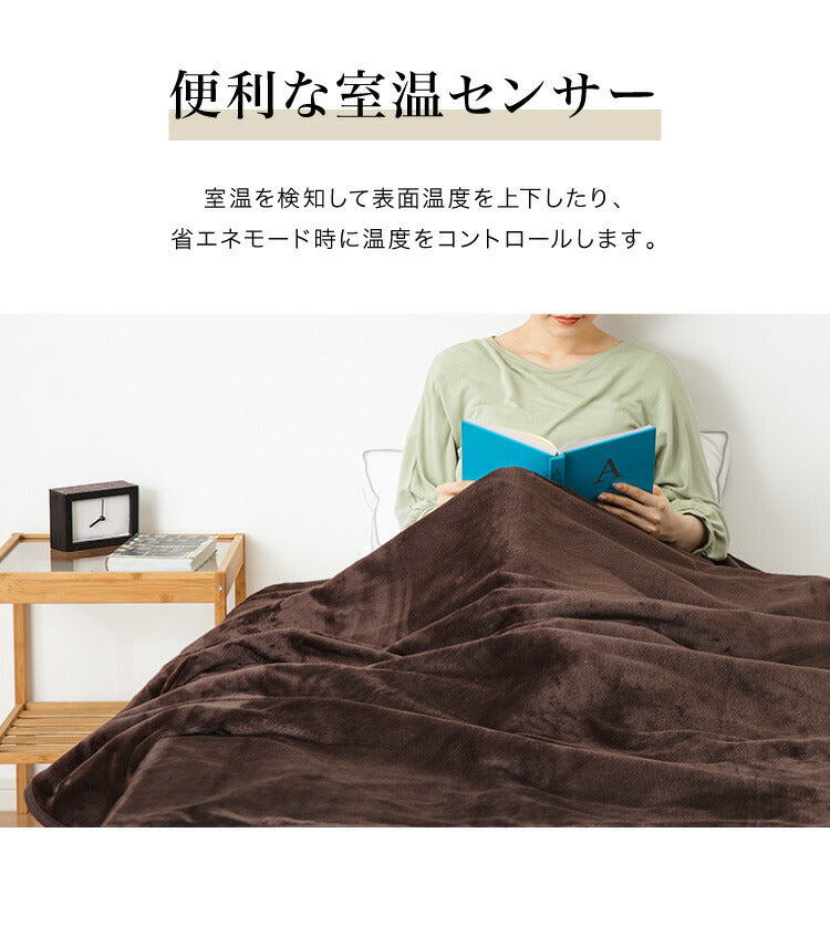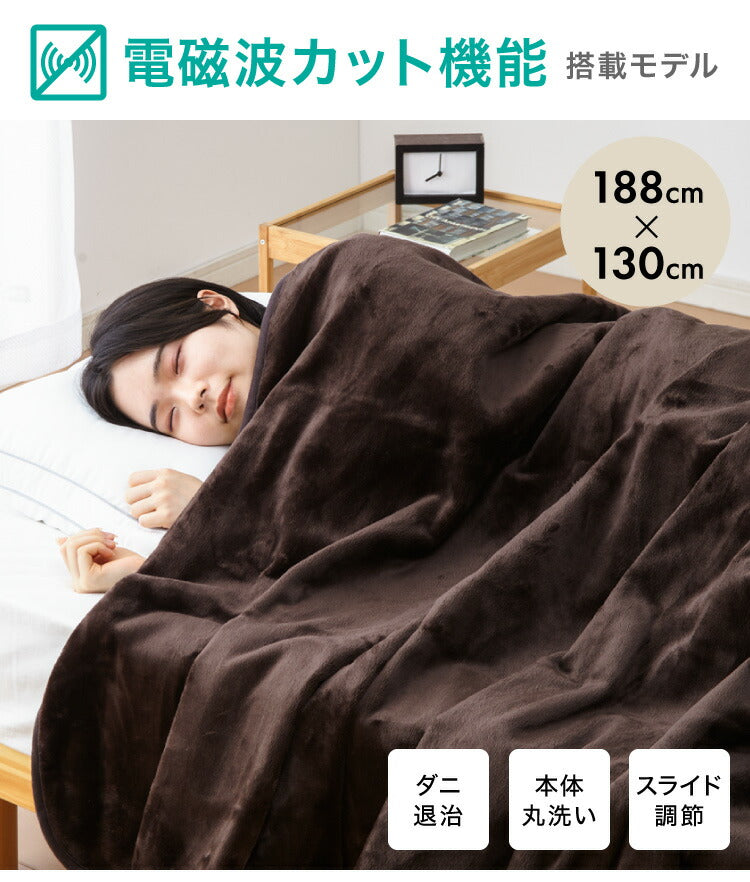 電磁波カット フランネル 電気掛け敷き毛布 188×130cm 本体丸洗い可能 ダニ退治 スライド調節 室温センサー 電気毛布 ブラウン
