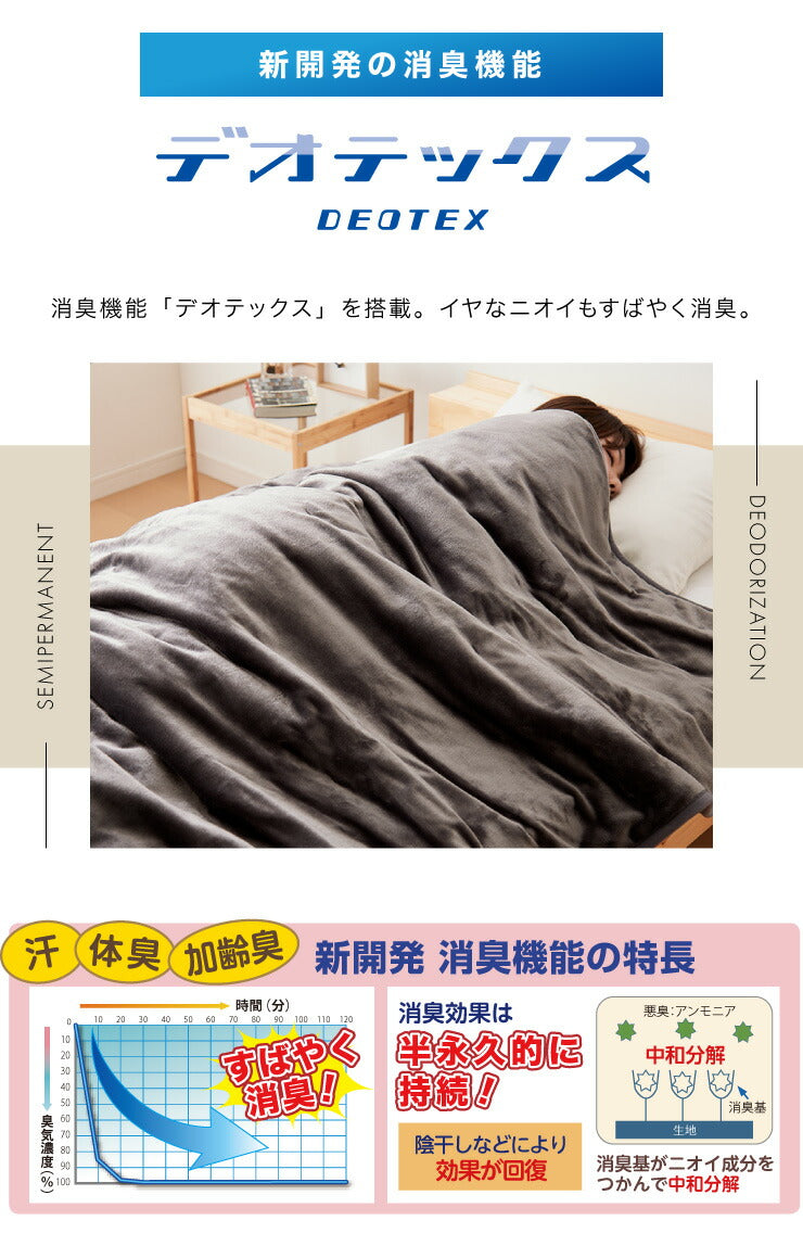 フランネル 電気掛け敷き毛布 188×130cm 消臭 デオテックス 本体丸洗い可能 ダニ退治 スライド調節 室温センサー 電気毛布