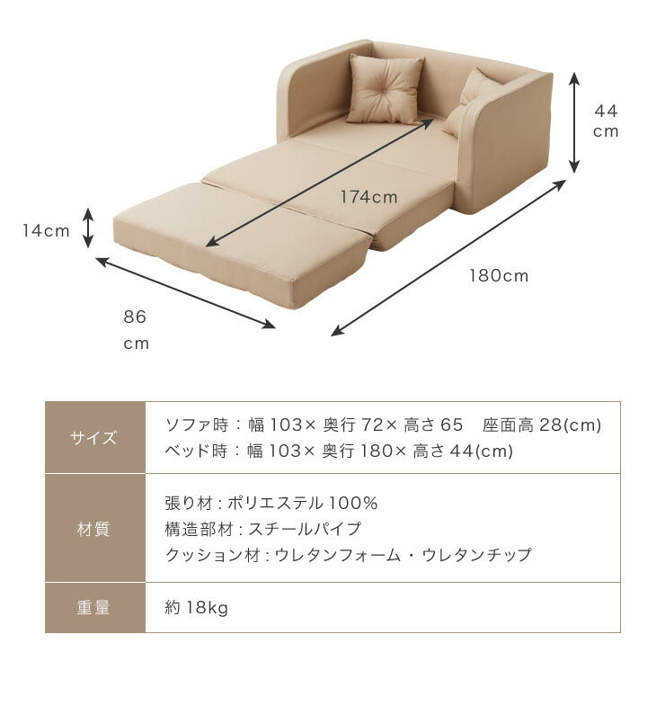 ベッド時:幅103×奥行180×高さ44(cm)