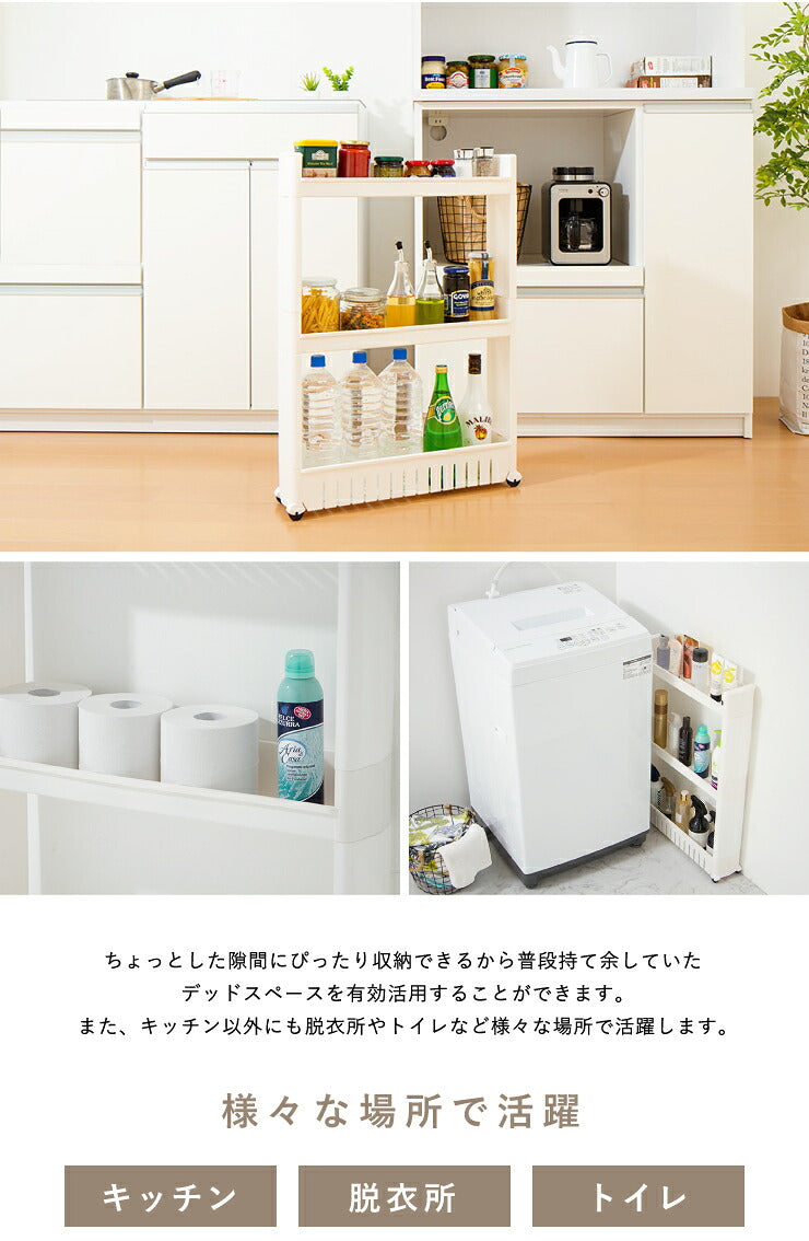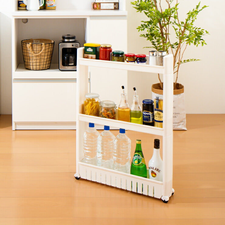プラスチックキッチン収納ワゴン 3段 幅12.4cm 隙間収納 スマートワゴン キッチン収納 すきま収納 キャスター スリムワゴン キッチンワゴン キッチン 収納 ワゴン