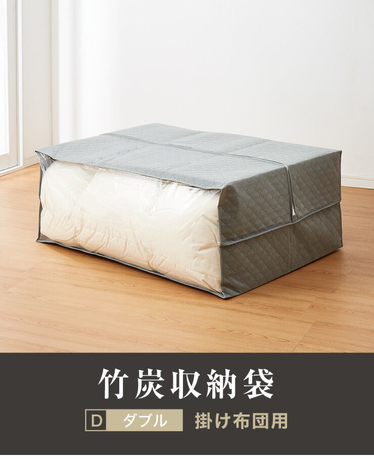 炭入り 消臭 収納ケース ダブル 布団収納 掛け布団収納ケース 炭入り消臭 収納袋 竹炭 竹炭収納 消臭 調湿 布団袋 布団用バッグ