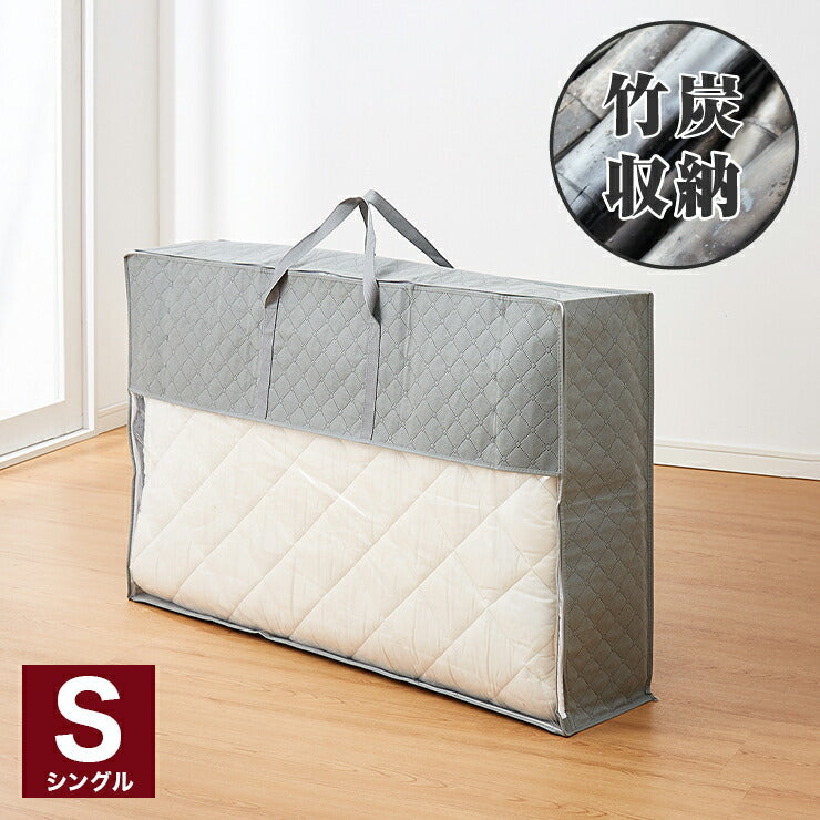 収納ケース 敷布団シングルケース 竹炭収納袋 炭入り 消臭 炭入り消臭 調湿 コンパクト 省スペース 布団収納ケース 布団 ふとん 掛けふとん 袋 隙間収納 収納 クローゼット収納 押入れ収納 ふとん収納袋 布団袋