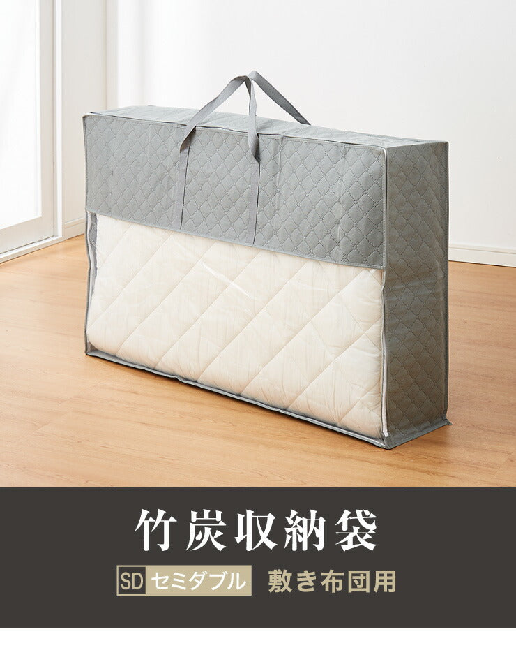 炭入り 消臭 収納ケース 敷布団 セミダブル ケース 炭入り消臭 収納袋 竹炭 竹炭収納 消臭 調湿 布団袋 布団用バッグ 敷き布団