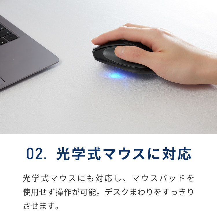 ・光学式マウスに対応し、マウスパッド無しでマウスの操作が可能です