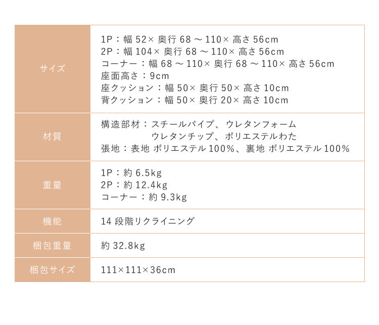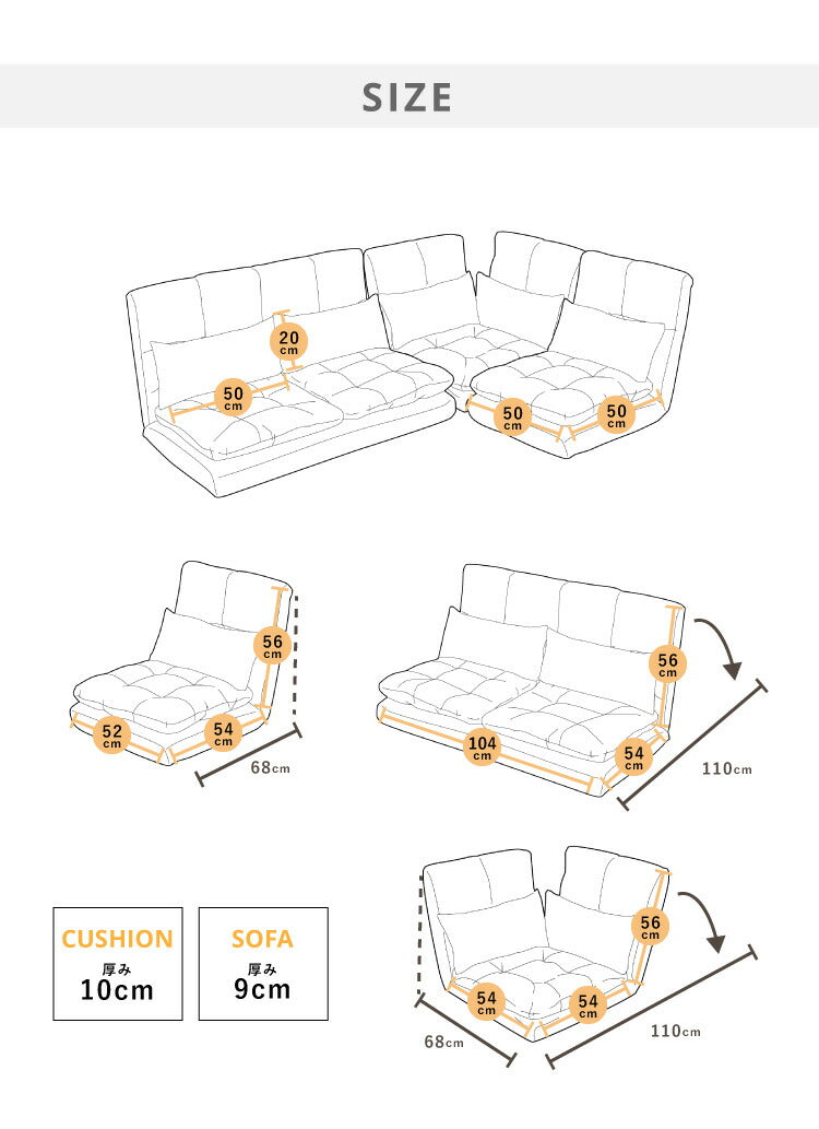 コーナー:(W)68~110×(D)68~110×(H)56cm(SH)9cm