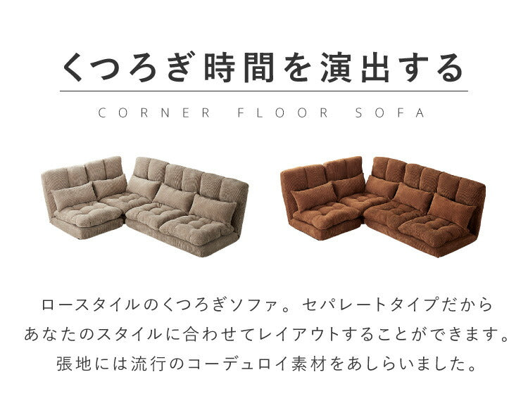 ソファ ふっくらコーナーソファ3点セット コーデュロイ生地 北欧 おしゃれ ふっくら 14段階 リクライニング クッション付き 2人掛け 3人掛け ファブリック リクライニングソファ ローソファ コーナーソファ フロアソファ