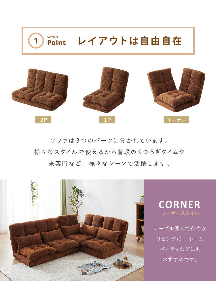 コーデュロイ生地、ソファ、ふっくらコーナーソファ3点セット、14段階、リクライニング、2人掛け、3人掛け、北欧、おしゃれ、ファブリック、レザー、リクライニングソファ、ローソファ、コーナーソファ、コーナー、ロータイプ、フロアーソファ、新生活、おうち、ローソファ、カウチソファ、三人掛け、4人掛け、ファーブリック、コーデュロイ風、モダン