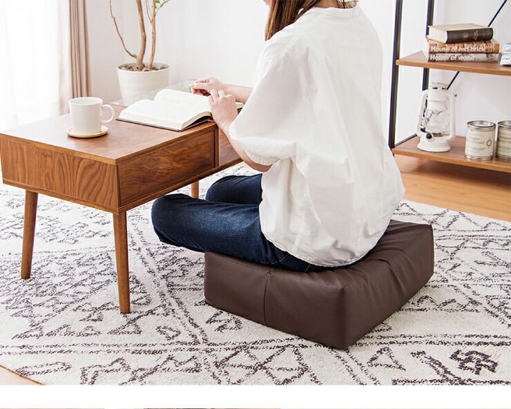 低反発クッション レザー調 四角 PU クッション 四角 クスエア 低反発 合皮 フェイクレザー レザー 撥水 極厚 スクエアクッション クッション 椅子 フロアクッション 座椅子 座布団 シートクッション ブラウン アイボリー