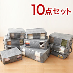 竹炭衣類収納袋 10点セット 衣類整理 収納ケース 消臭 窓付き 竹炭 不織布 収納ボックス