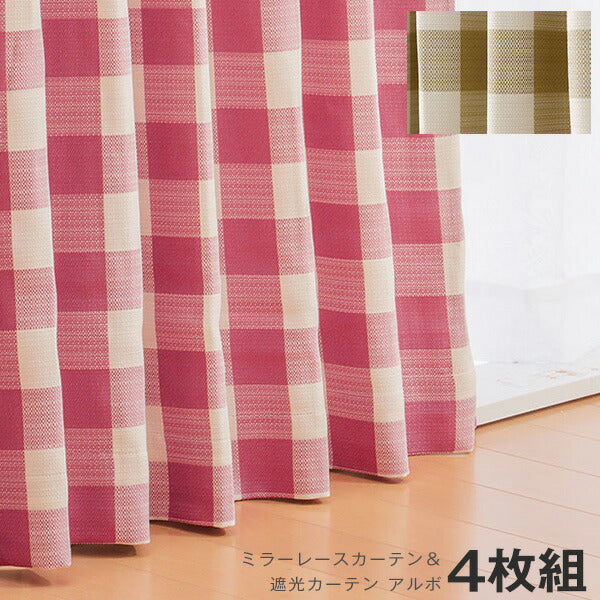 カーテン ミラーレースカーテン レースカーテン ミラーレース アルボ 4枚組 丈133cm 丈176cm 丈198cm 遮光 セット レース UVカット 紫外線カット 遮光カーテン 形状記憶 洗える 丸洗い おしゃれ 北欧 節電 省エネ