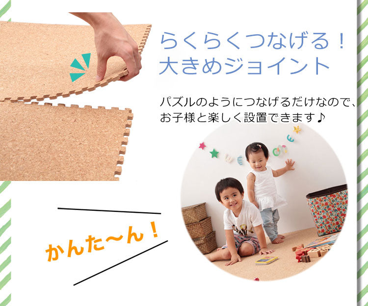 コルクマット ジョイントマット 96枚 12畳 45cm 大粒 大判 洗える ウォッシャブル 低ホルム PE樹脂 コルク 天然大粒コルクマット【cocora】ココラ 防音 赤ちゃん 保温 フロアマット 96枚組
