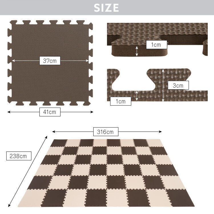 ジョイントマット、大判、41cm、48枚、PE樹脂、低ホルムアルデヒド、6畳相当、48枚組、洗える、防音、断熱、保温、サイドパーツ付、ベビー、赤ちゃん、幼児、おしゃれ、フロアマット、プレイマット、キッズマット、ベビーマット、カーペット、マット、ラグ