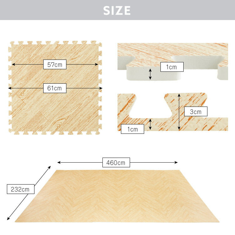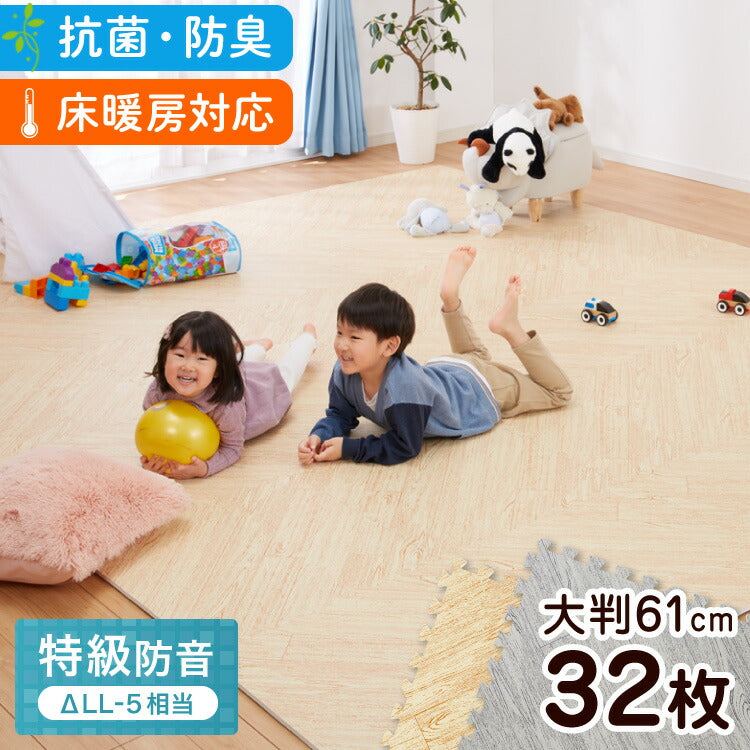 ジョイントマット、大判、61cm、32枚、ヘリンボーン柄、PE樹脂、低ホルムアルデヒド、6畳相当、32枚組、洗える、防音、断熱、保温、サイドパーツ付、レイアウト自由、安心素材、ベビー、赤ちゃん、幼児、おしゃれ、かわいい、リビング、フロアマット、プレイマット、キッズマット、ベビーマット、カーペット、マット、ラグ、ヘリンボーン