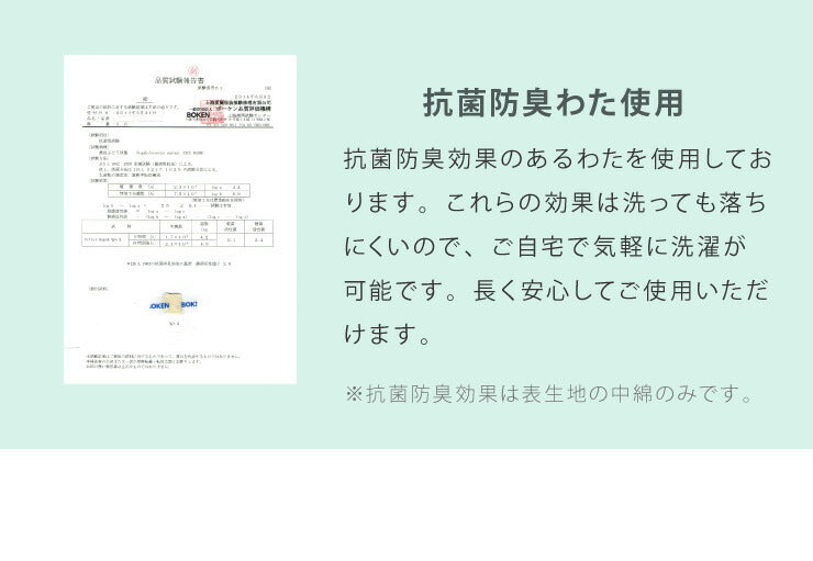 中わた:ポリエステル 100%(抗菌防臭わた)