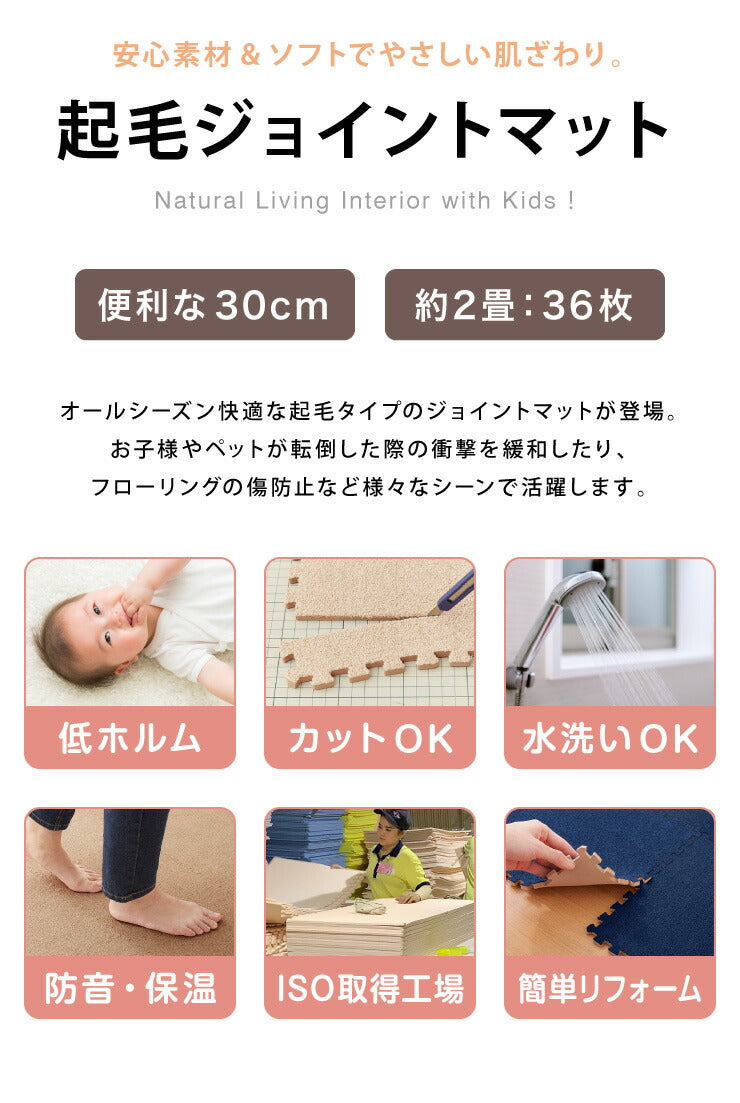 ジョイントマット 洗える 起毛 30cm 36枚セット 2畳分 厚さ0.7 単色 防音 低ホルムアルデヒド 防音 抗菌防臭 カットOK 床暖房対応 カーペットマット フロアマット プレイマット ソフトマット マット 模様替え