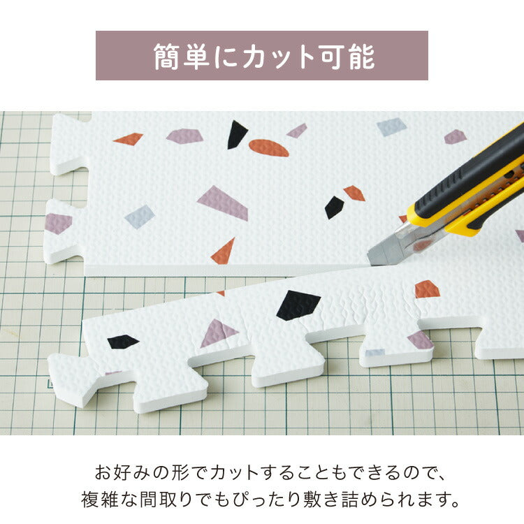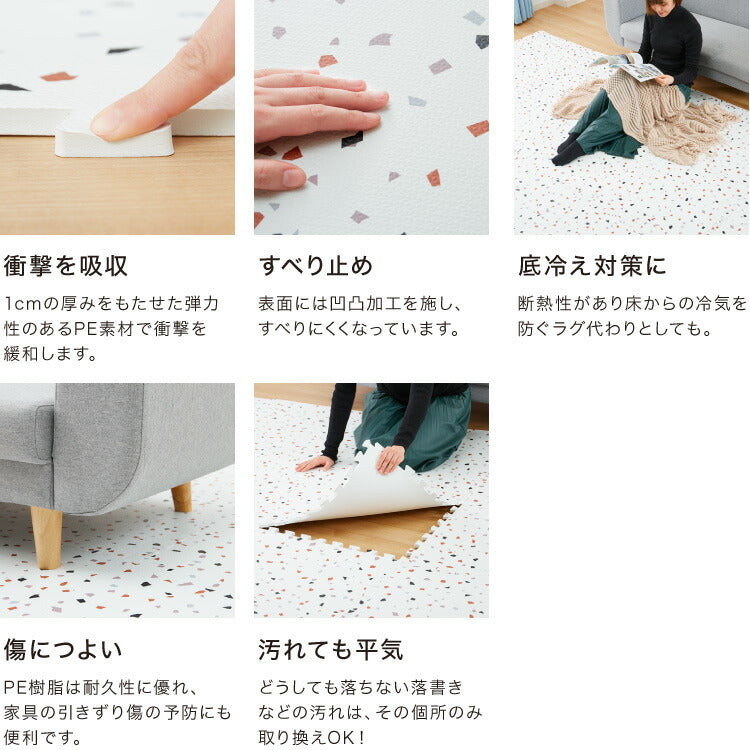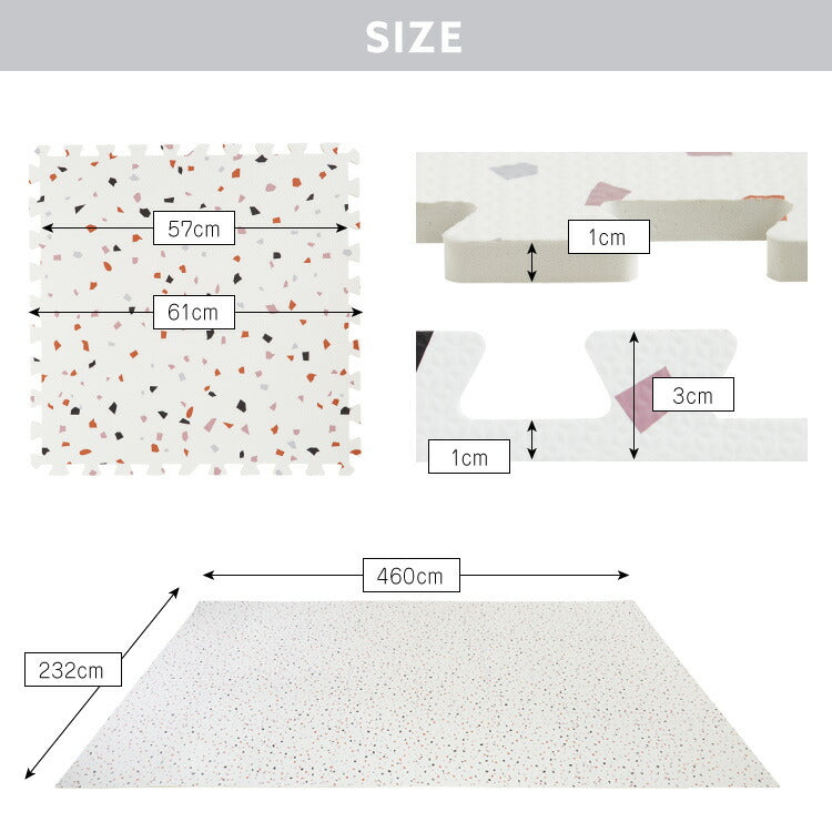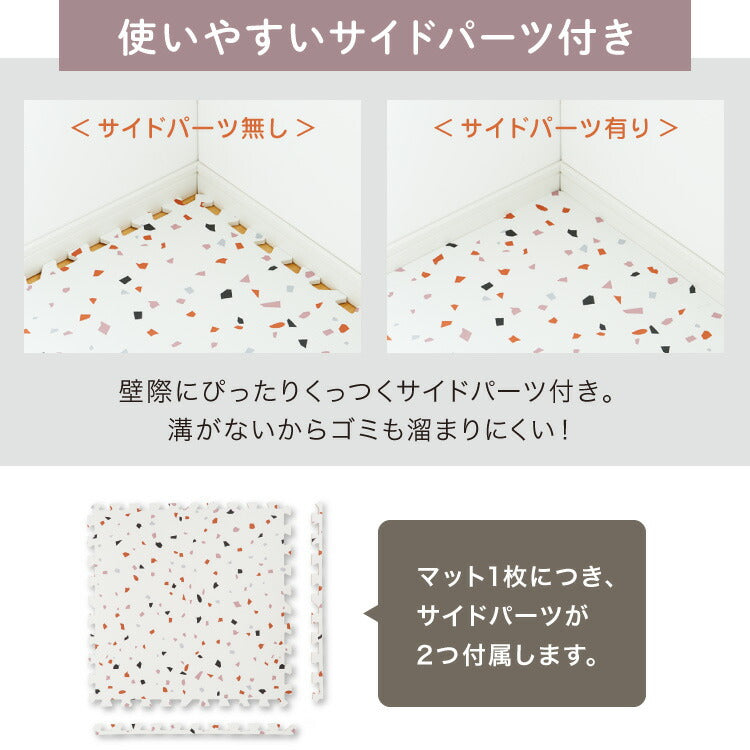 ジョイントマット 大判 61cm 32枚 テラゾー柄 大理石 PE樹脂 低ホルムアルデヒド 6畳相当 32枚組 洗える 防音 断熱 保温 サイドパーツ付 レイアウト自由 安心素材 おしゃれ フロアマット プレイマット