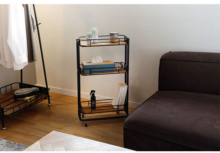 マルチワゴン キッチンワゴン シンプル かわいい おしゃれ 新生活 一人暮らし 天然木 アイアン スチール ワゴンタイプ 収納 BCW-200-OS(代引不可)
