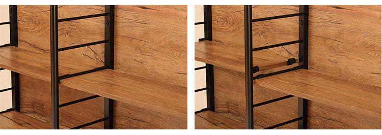 フックが互い違いになっているので、隣の棚を同じ段にすることができます。