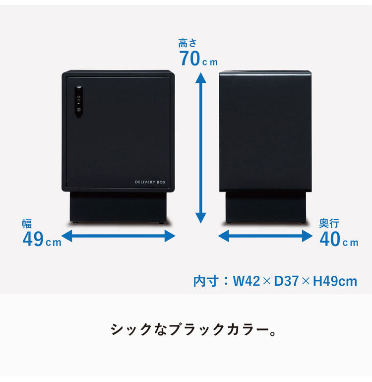 宅配ボックス 置き配ボックス 配達ボックス 幅49 奥行40 高さ70 ダイヤル式 大容量 置き配 スタイリッシュ スチール 屋外 後付け 宅配便 宅急便 印鑑ホルダー付 左開き ブラック(代引不可)