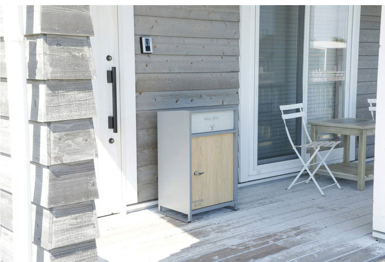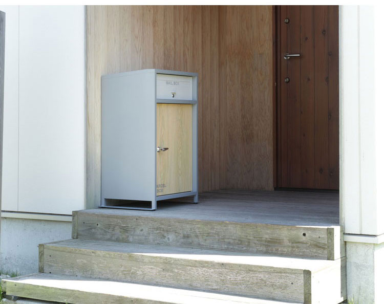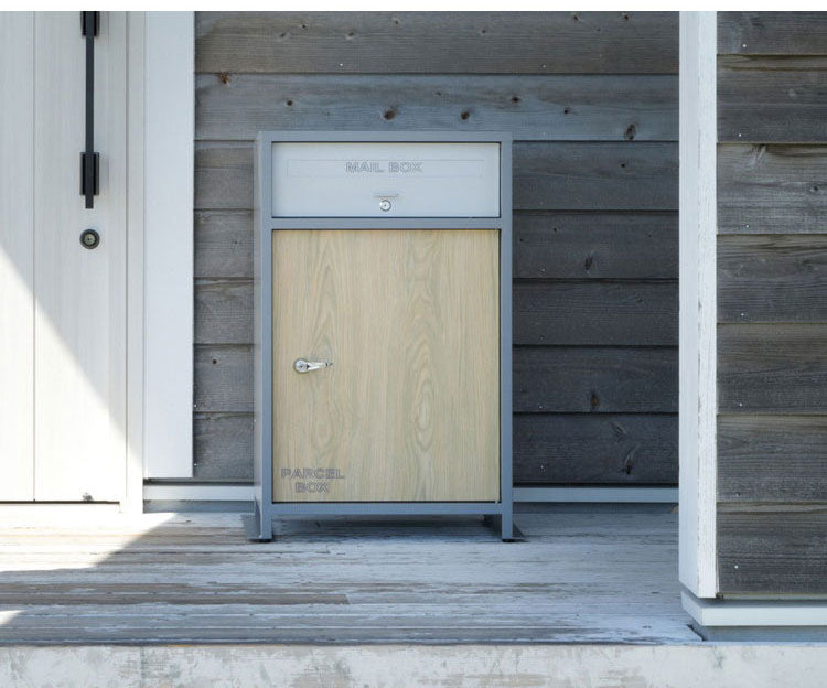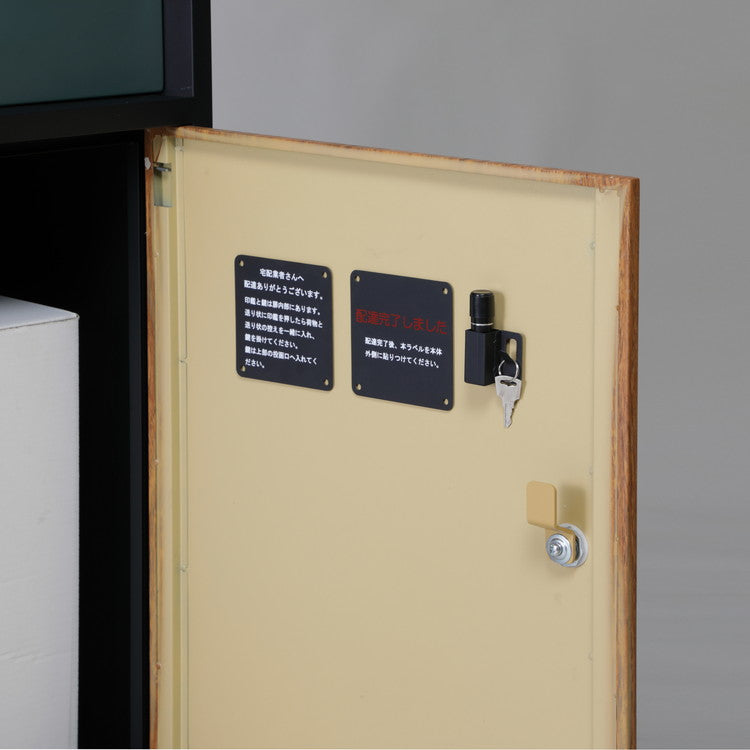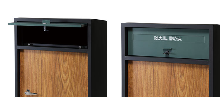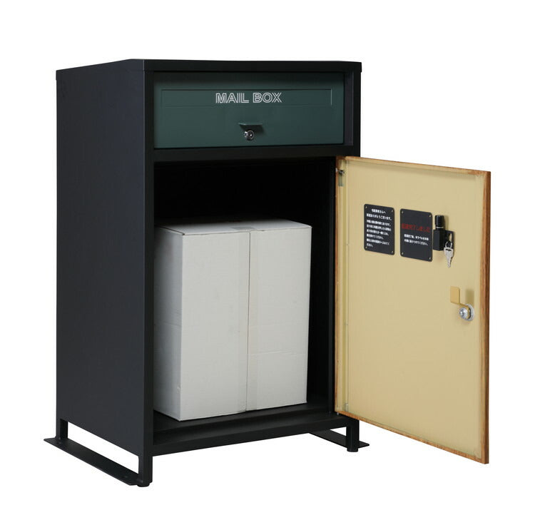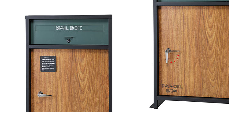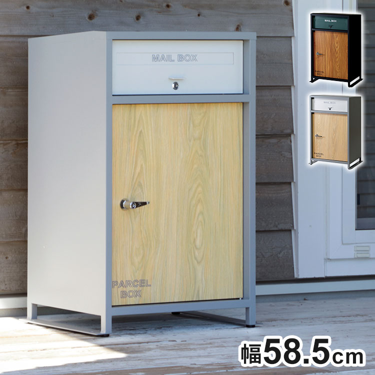 ルーノ宅配ボックス ブラック グレー スタンドポスト 郵便ポスト付き 一体型 郵便受け メッセージステッカー付き 木製風 木目 大容量 スチール製 鍵付き 印鑑ホルダー(代引不可)