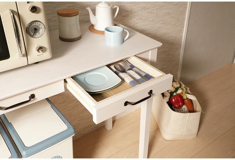天板下には小物収納に便利な引き出しを2つ備えています。