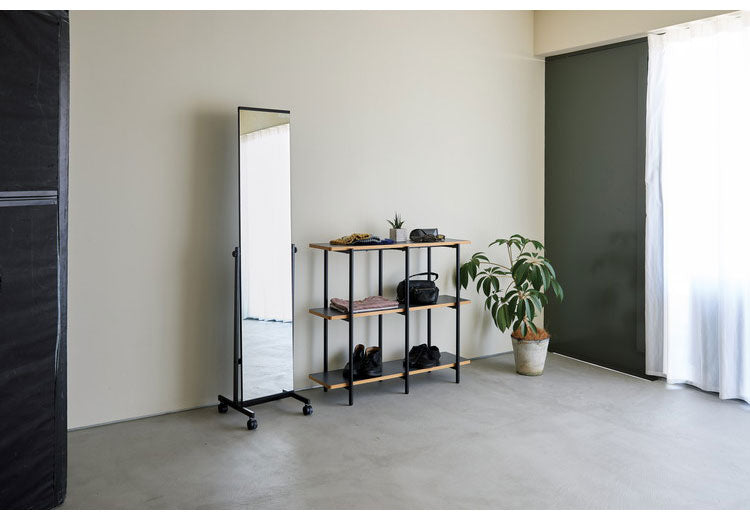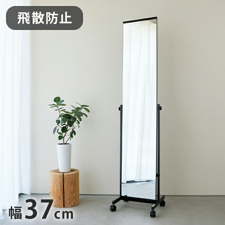 スタンドミラー スリムタイプ 幅37 奥行き36 高さ158.5 ミラー 鏡 全身鏡 姿見 スチール製 スチールフレーム キャスター付 ストッパー付 飛散防止 おしゃれ シンプル(代引不可)