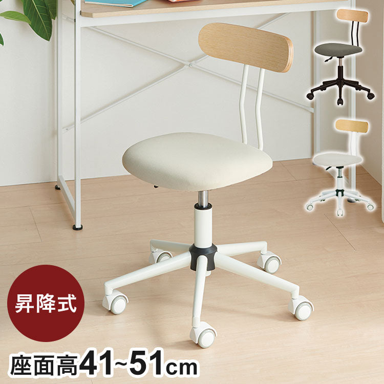 プティ ホームチェア グレー アイボリー キャスター付き 椅子 いす イス 背もたれあり 昇降式 シンプル おしゃれ テレワーク 自宅勤務 在宅勤務 リモートワーク 肘無し(代引不可)