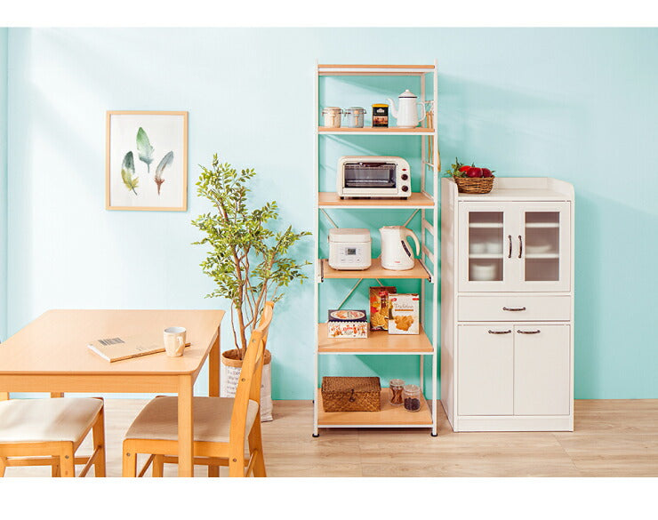●スライド棚があるので炊飯器やレンジなどの収納にも最適。