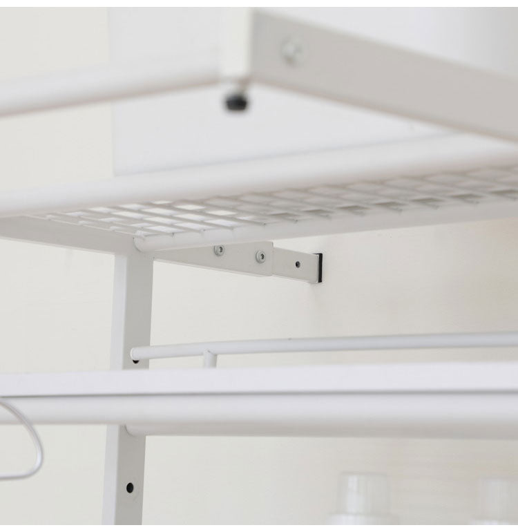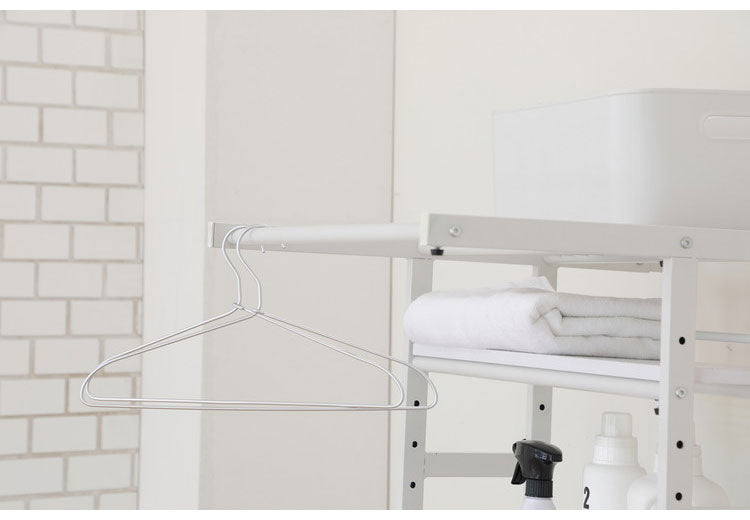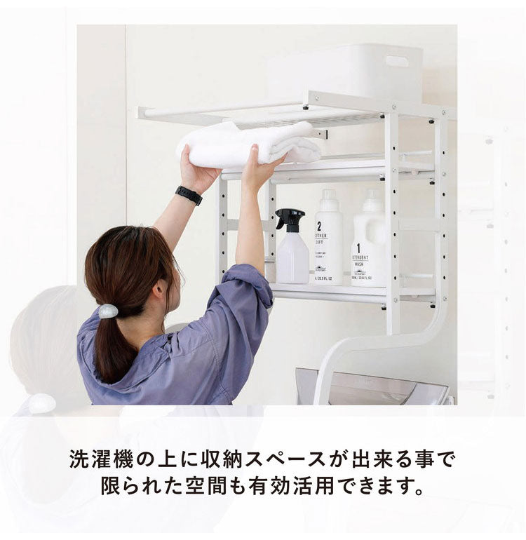 洗濯機ラック ランドリーラック 洗濯機上収納 洗面所収納 ランドリー収納 立て掛け スチール製 収納ラック ハンガーフレーム付 フレーム調整 調節可 省スペース 簡単設置 ホワイト(代引不可)