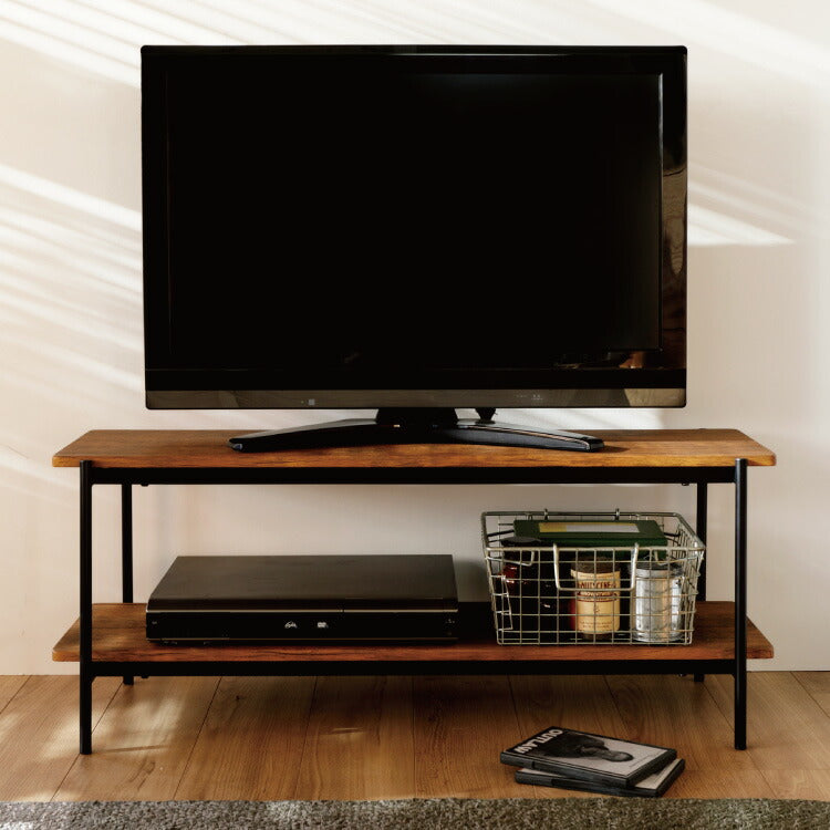 ヴィンテージ調のオープンラック風デザインが特徴のテレビボード。