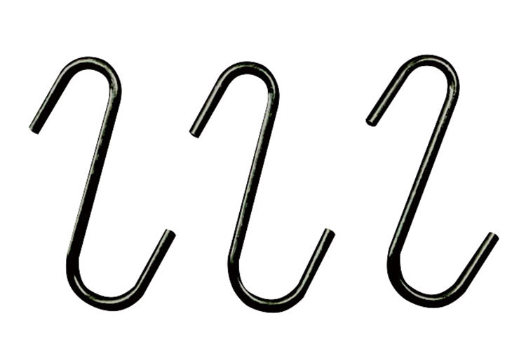S字フックが3個付属。背面に使用したスチール棚に対して使用できます。
