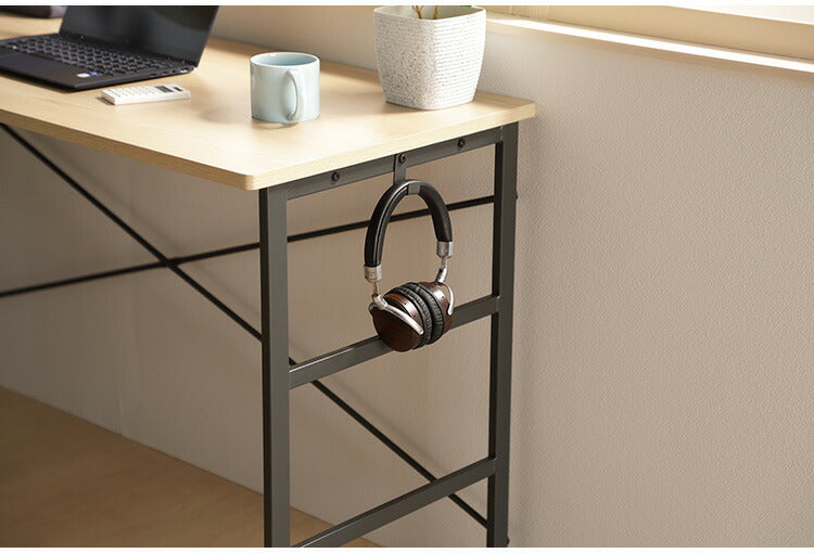 デスク 勉強机 幅90 奥行50 高さ72cm 木目調 アジャスター付き サイドフック付き コード穴 パソコンデスク 作業机 リモートワーク モダン おしゃれ 新生活 リビング オフィス ヴァンナ VAN-D90(NA)(代引不可)