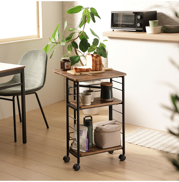 バタフライワゴン 折り畳み式 キッチンワゴン 幅50(20) 奥行45 高さ70cm 木目調 キッチン収納 折りたたみ収納 キッチンラック リビング ダイニング VBW-50(BR) VBW-50(NA)(代引不可)