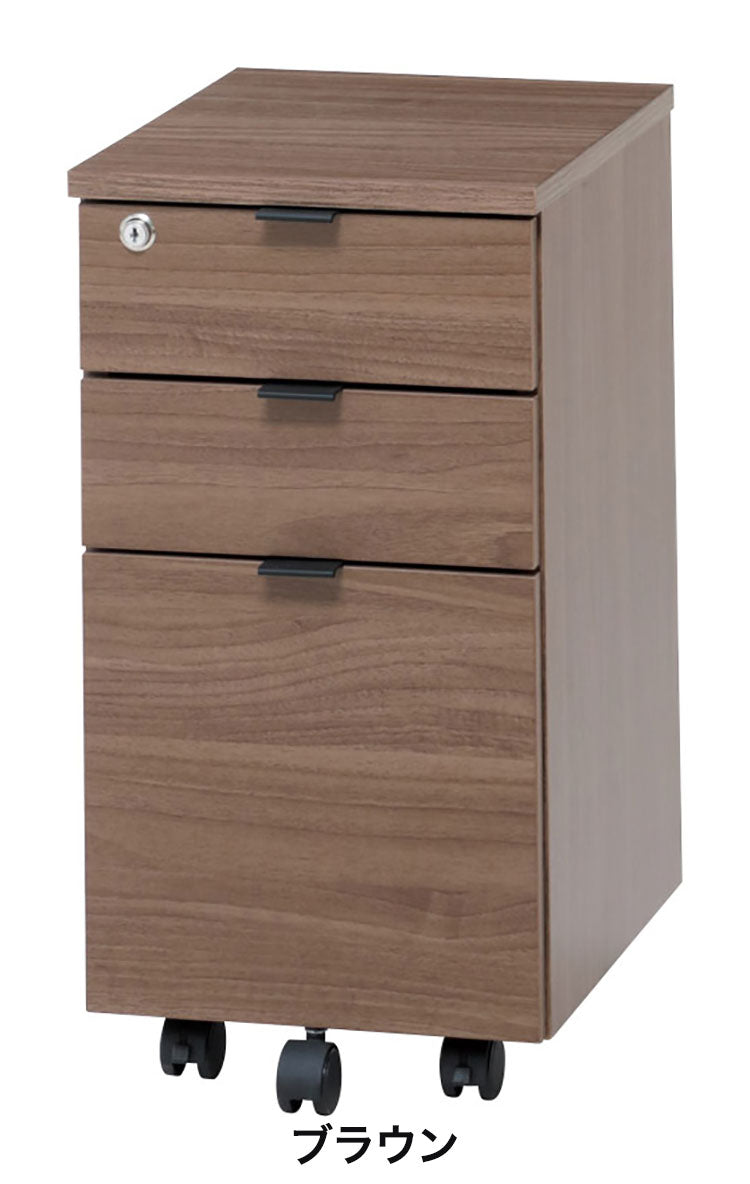 デスクワゴン 引き出し キャスター付き 鍵付き 木目調 ファイル収納 A4サイズ 収納ワゴン 省スペース コンパクト インワゴン リモートワーク 在宅 収納家具 3段 テレワーク 会社 オフィス 幅31cm(代引不可)
