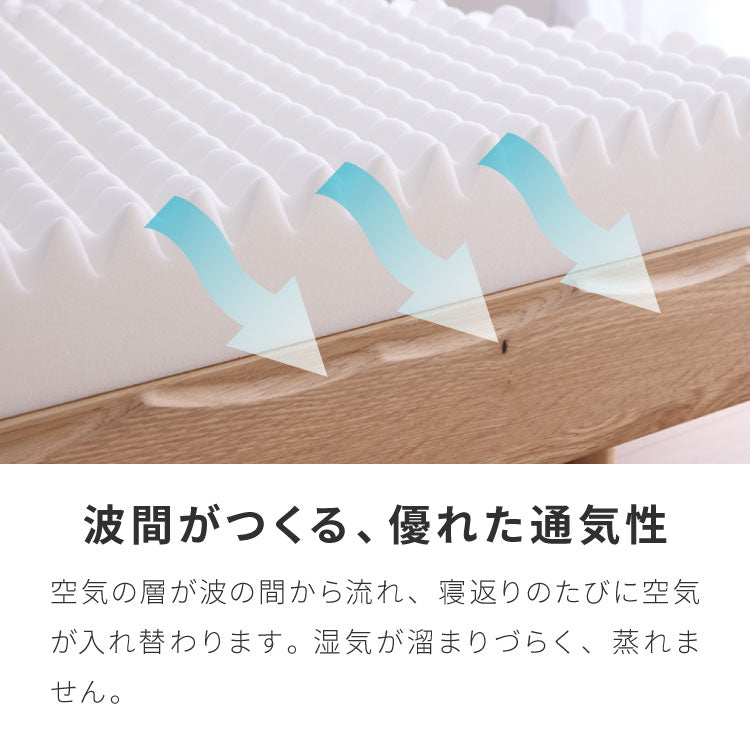 空気層が波の間から流れ、寝返りのたびに空気が入れ替わり、湿気が溜まりづらくムレにくい