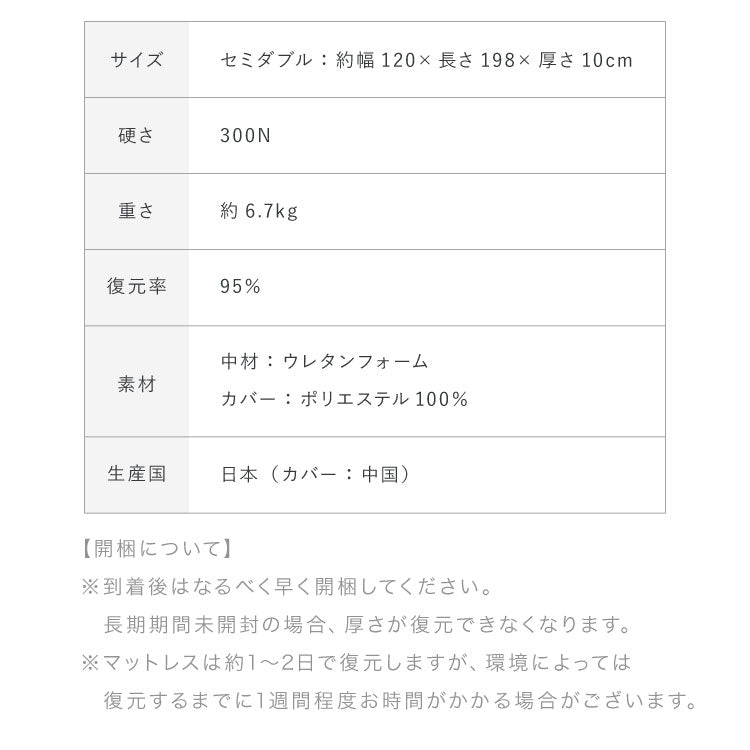 サイズ:10cm×120cm×198cm(厚さ×幅×長さ)
