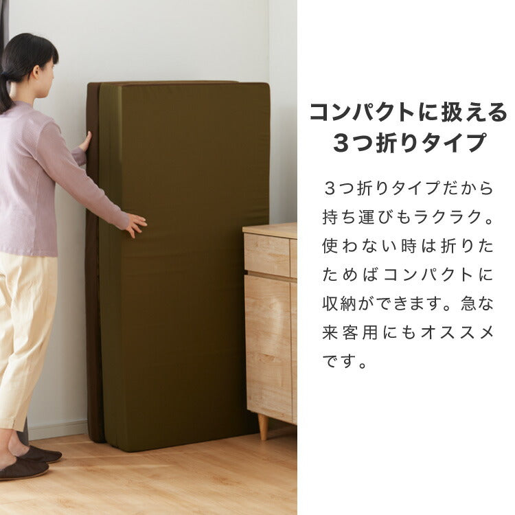 ・3つ折りタイプで収納や持ち運びが簡単にでき、湿気対策として立てて干すこともできます。