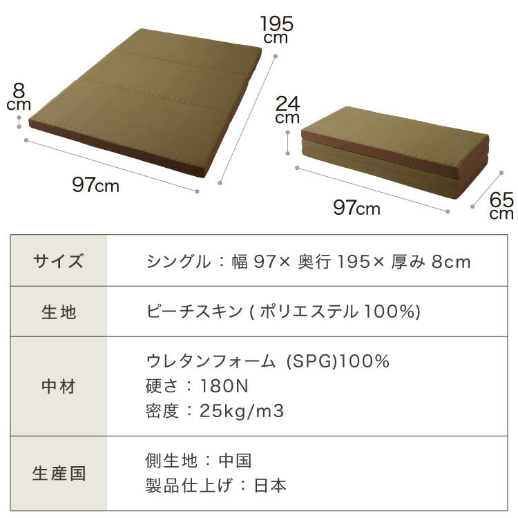 プロファイルマットレス シングル Achilles アキレス 日本製 三つ折り 厚さ8cm 体圧分散 3つ折り ウレタン 国産 キルト加工 180N ハイブリッドプロファイル加工 バランスマットレス シングルマットレス(代引不可)