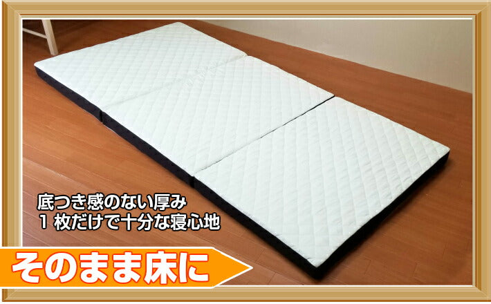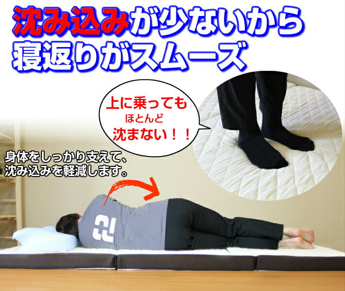 沈み込みが少ないので、良い寝姿勢で寝返りもスムーズにできます。三つ折りタイプでコンパクトに収納可能です。