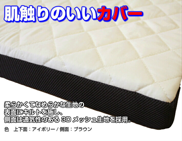 生地は、表面に柔らかくてなめらかなキルト生地を使用、側面は通期性のあるメッシュ生地を使用しております。