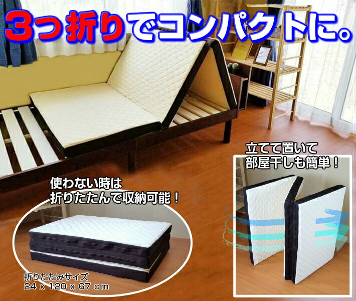 沈み込みが少ないので、良い寝姿勢で寝返りもスムーズにできます。三つ折りタイプでコンパクトに収納可能です。