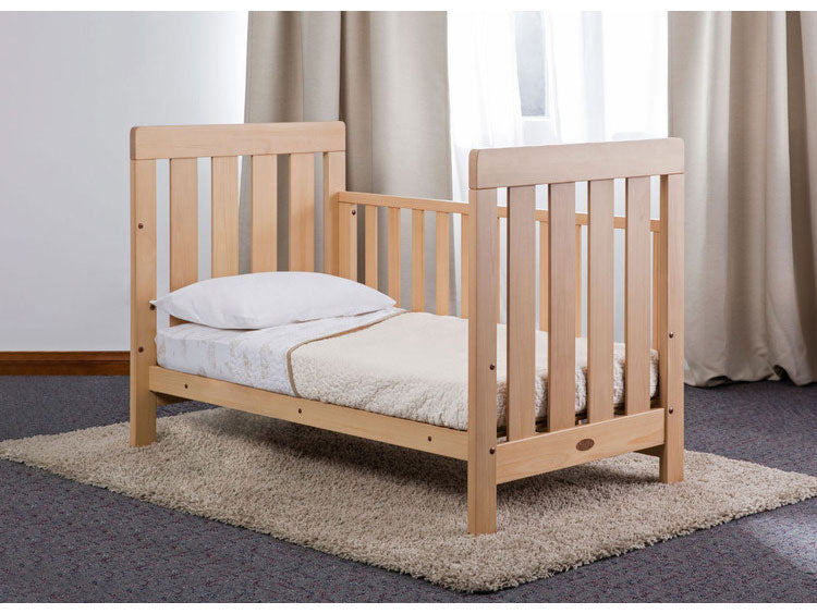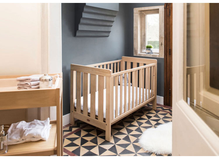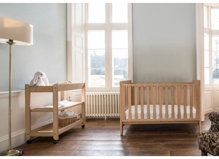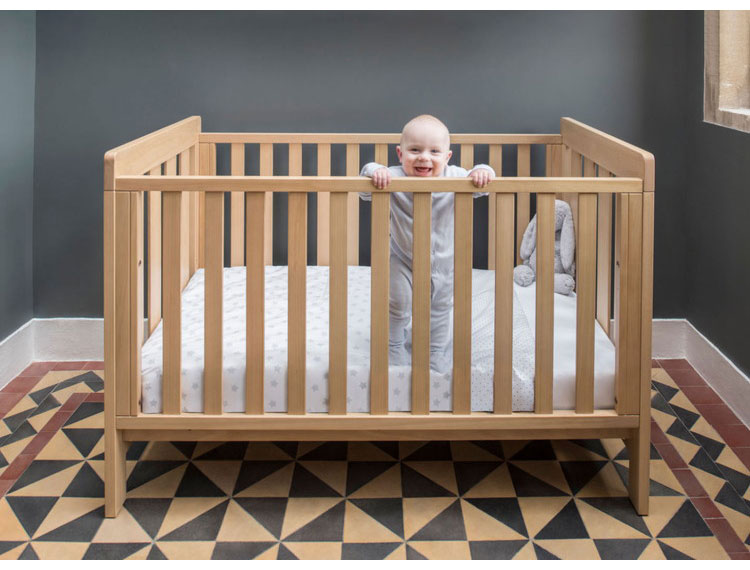 天然木の質感を楽しめるようシンプルにデザインされたベビーベッド。