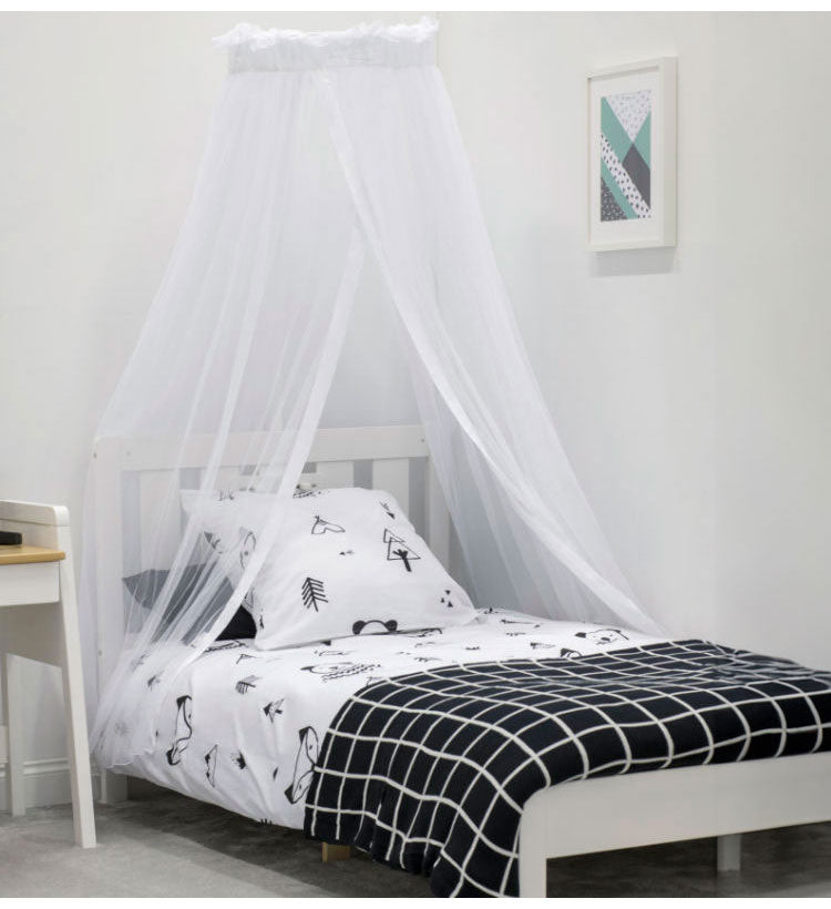 ベビーベッドで寝ている赤ちゃんを、埃や害虫、エアコンの風や直射日光から守るために取り付けます。