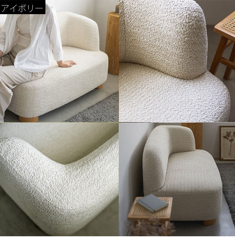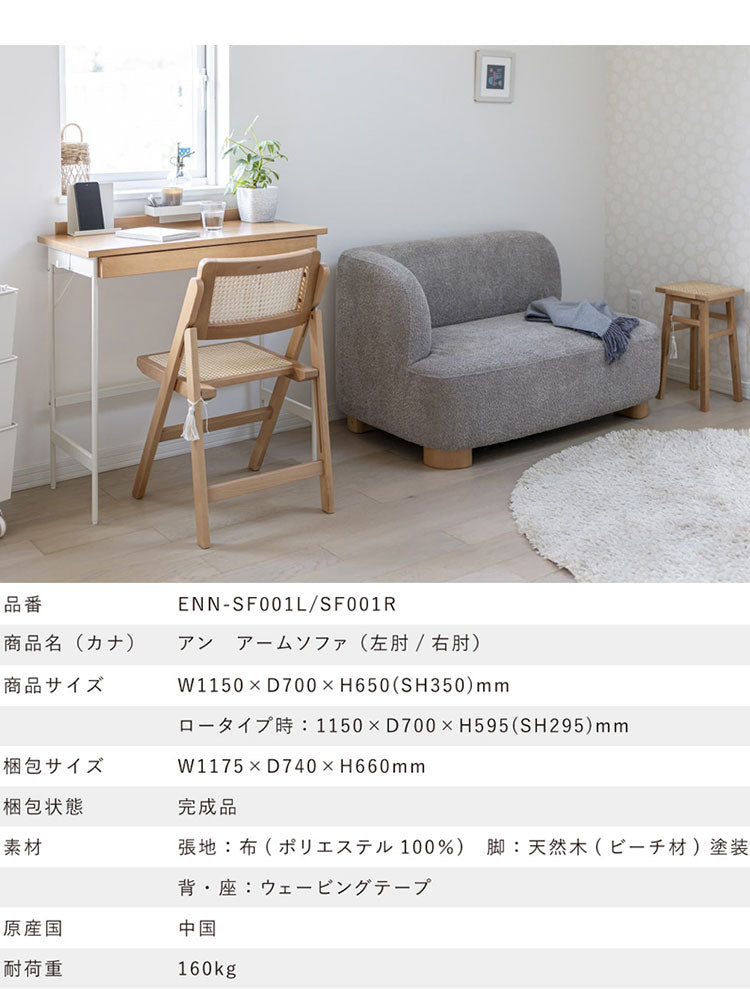 アン アームソファ L ソファ ローソファ フロアソファ コンパクト 肩肘 右肘 カウチ 丸み 淡色 アンニュイ 脚 着脱可能 ロータイプ仕様 幅115cm 奥行き70cm(代引不可)