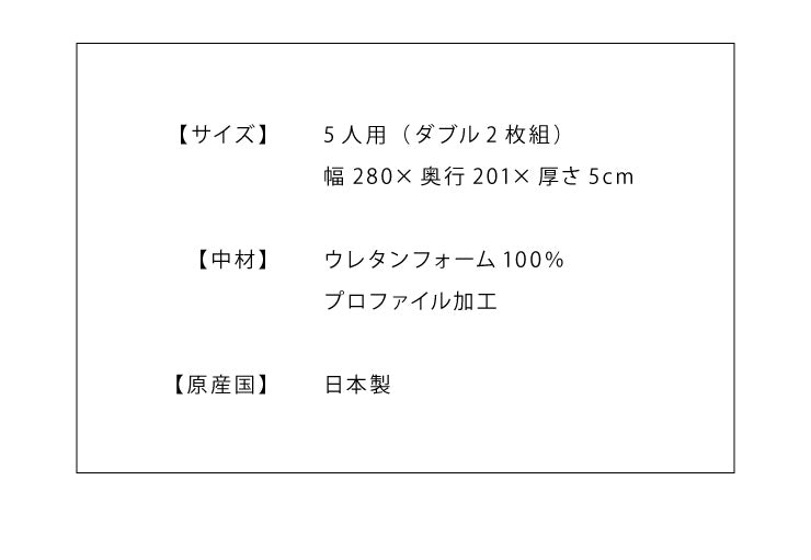 本体分割時【ダブルサイズ】:幅140cm×奥行き201cm×厚さ5cm