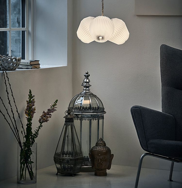1901年、デンマークの建築家 P.V. イェンセン・クリントが日本の折り紙をヒントに、オイルランプのあかりを調節するためのプリーツのシェードを作りました。